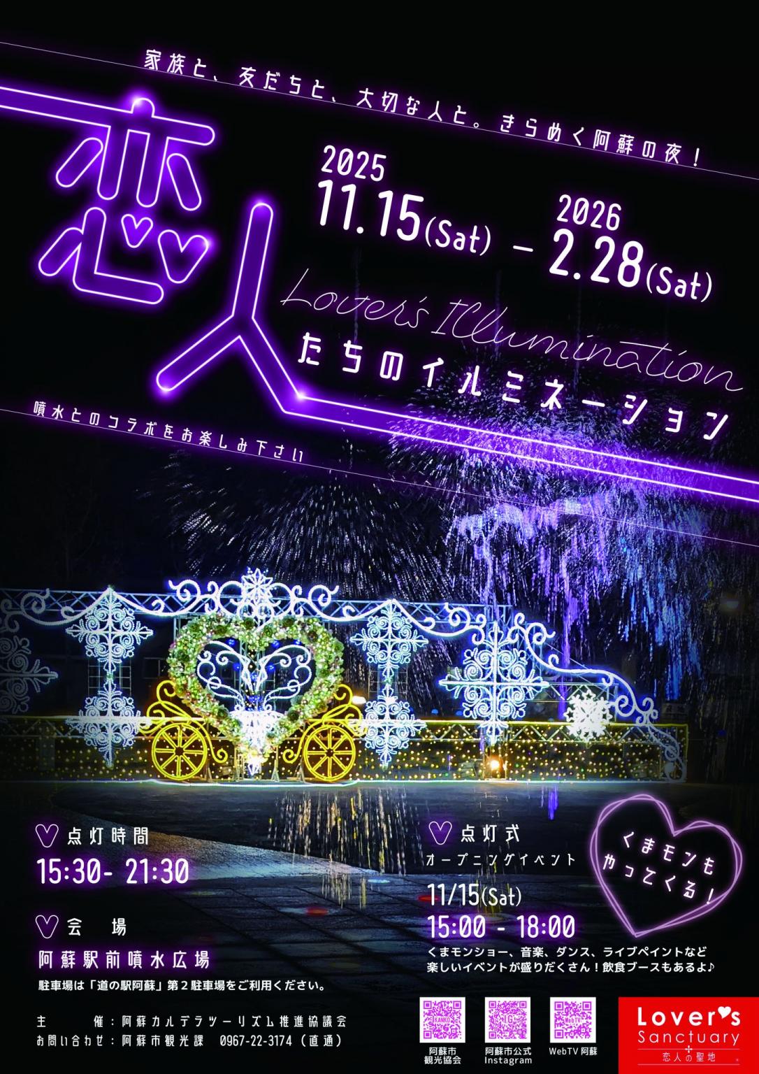 今年も阿蘇駅前の噴水広場で、イルミネーションイベントが開催中。噴水とイルミネーションのコラボレーションが阿蘇駅周辺を明るく彩ります。